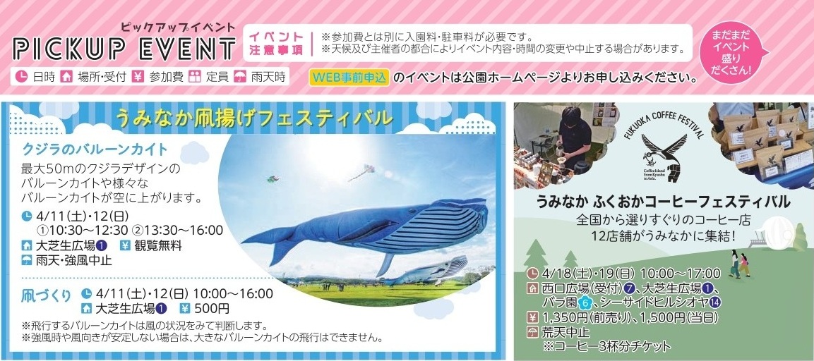 期間中は、上記の画像に掲載されている以外にも様々なイベントが開催されます。さらに、園内の各所では季節にちなんだフードメニューなども販売されています。また、「光の風の広場」にあるグランピング施設「INN THE PARK 福岡」では、日帰り入浴が行われています。